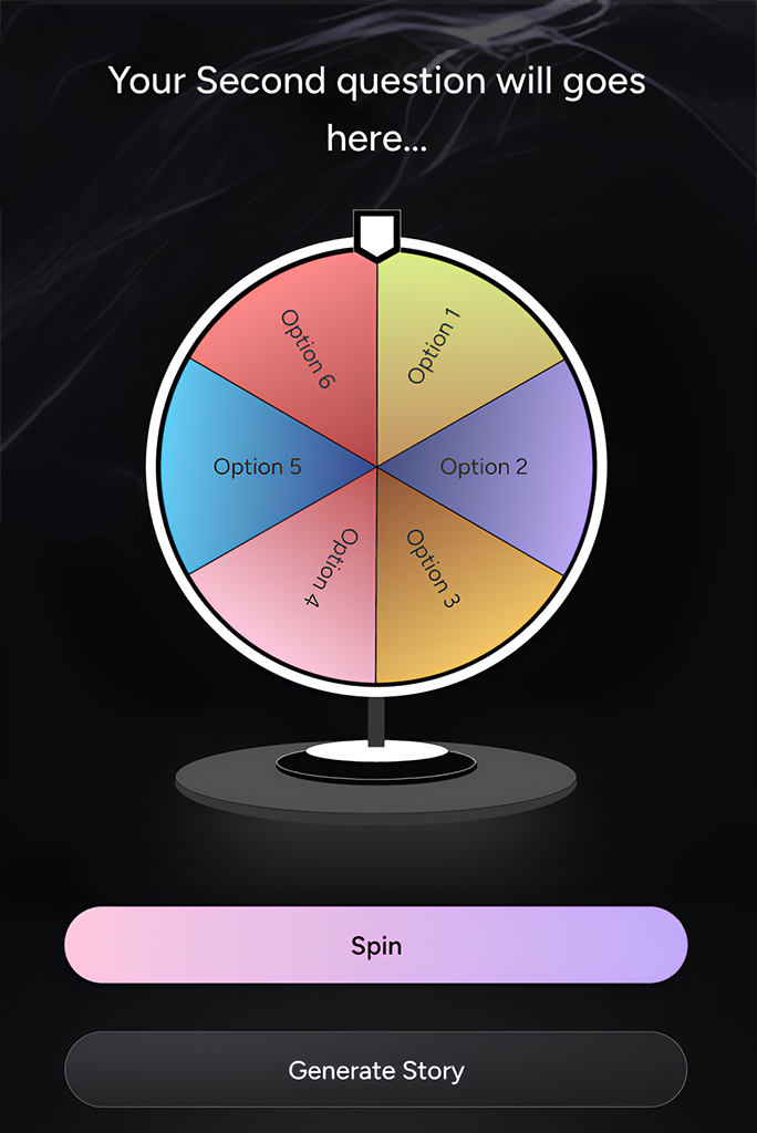 Your Character’s journey begins here — a unique hero shaped by your imagination. Spin the wheel, answer prompts, and watch AI bring them to life with story and visuals.